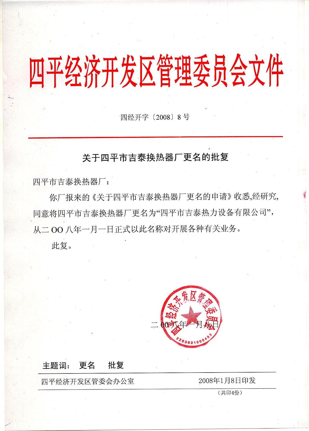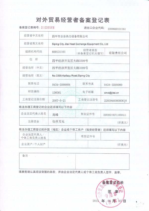 SIPING JITAI HEAT EXCHANGE EQUIPMENT CO.,LTD. 四平市吉泰熱力設(shè)備有限公司